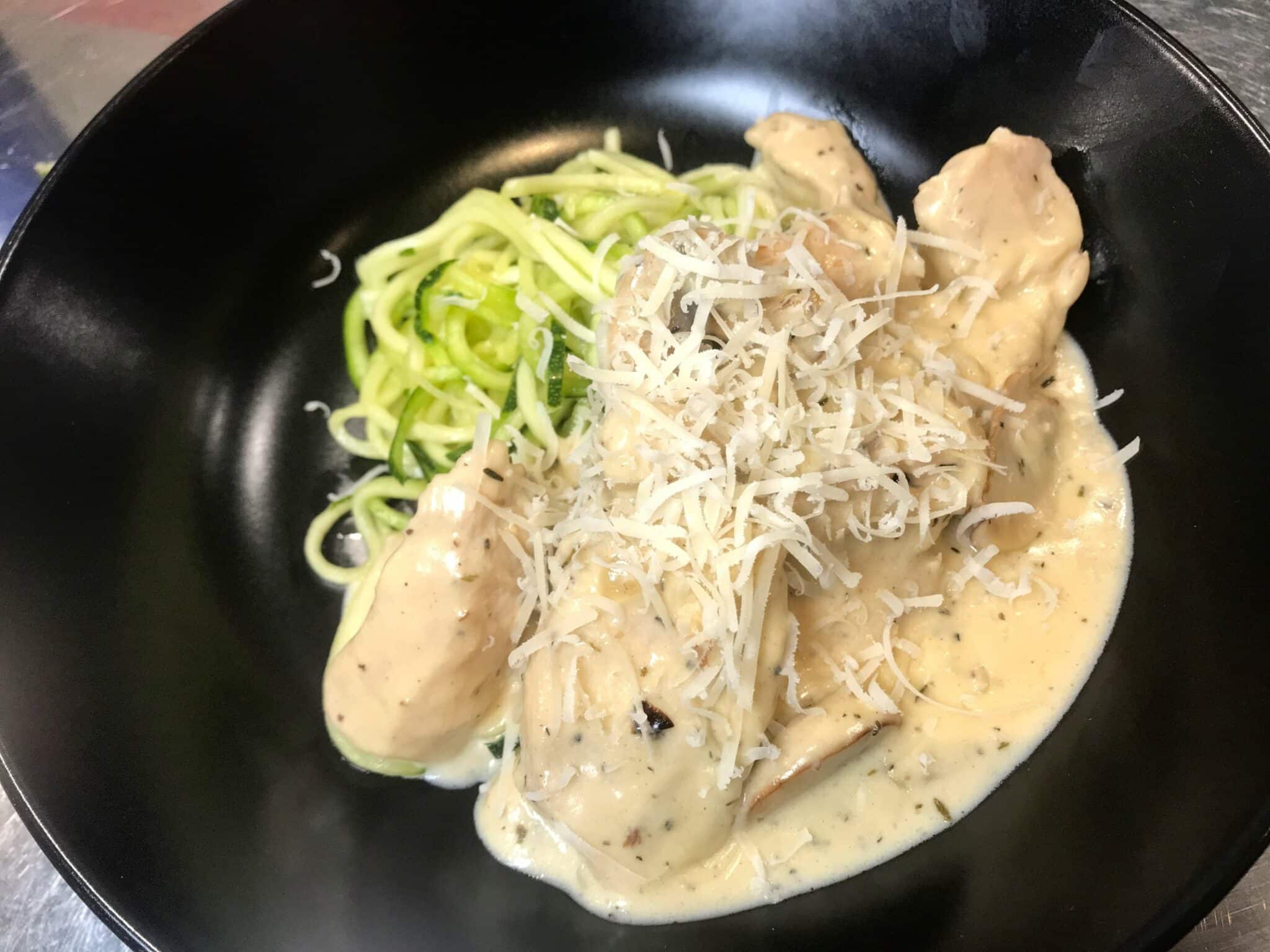 Keto squashspagetti med kylling i fløtesaus og trøffelolje
