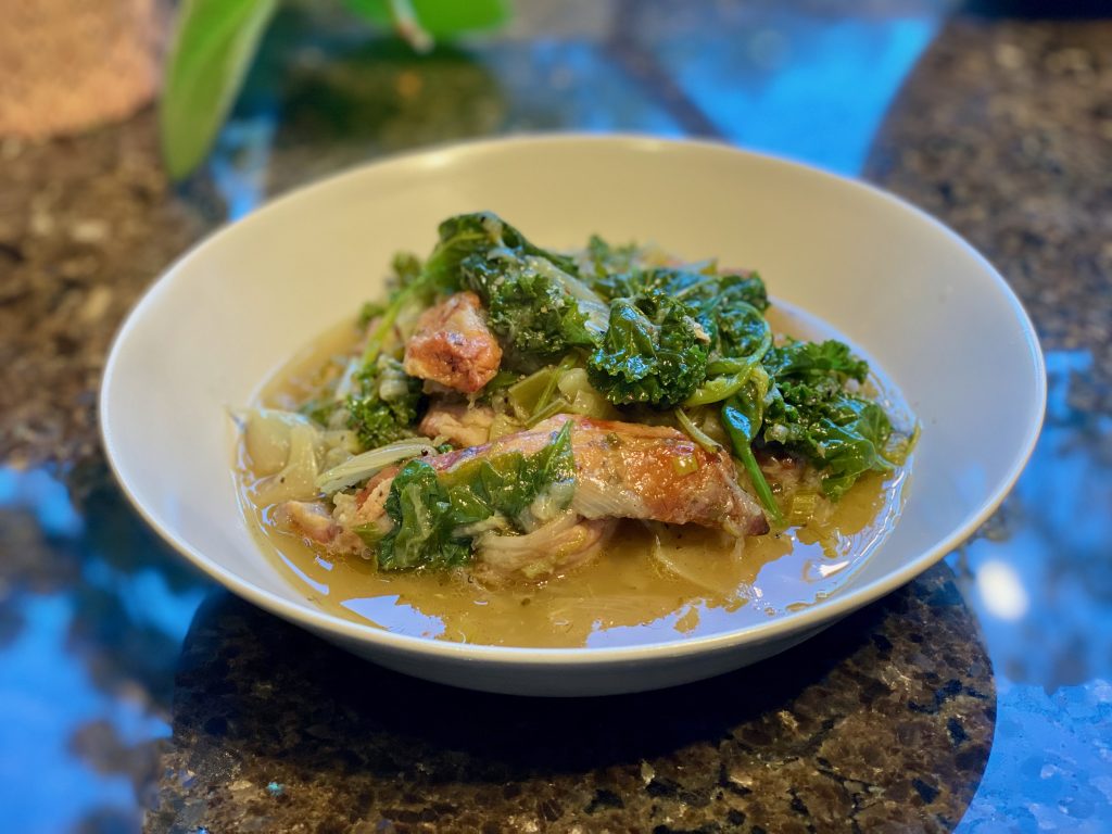 Vi spiste den alene, uten tilbehør ellers. Har du gjester som vanligvis spiser poteter, kan du ha dette som tilbehør til gjestene. Et annet alternativ til tilbehør, er å lage en god purè av sellerirot.
